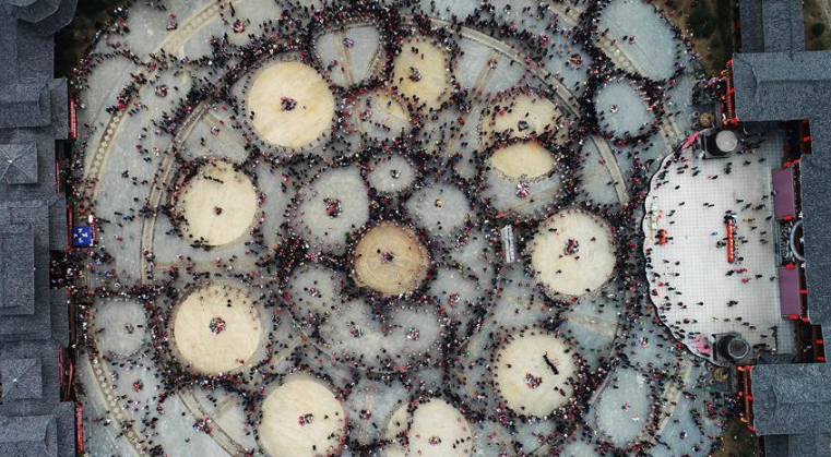 當(dāng)日,在貴州省黔東南苗族侗族自治州凱里市舟溪鎮(zhèn),來自各地的苗族群眾身著節(jié)日盛裝,歡聚在古老的“甘囊香”蘆笙堂。