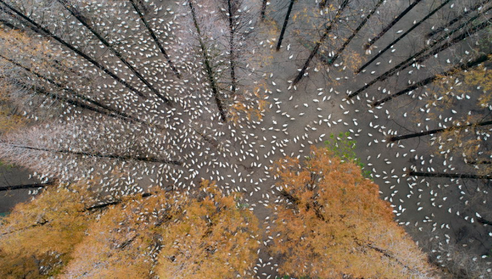 江蘇泗洪5000多只鵝林場吃食 場面壯觀