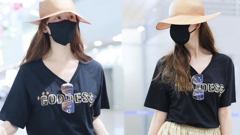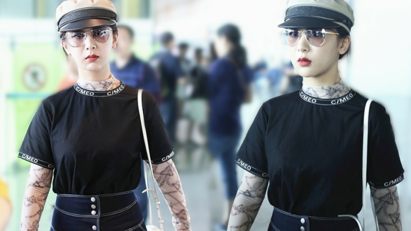 2019年7月25日,北京,楊紫現(xiàn)身機場。她穿黑色短T配牛仔裙變時髦女郎,戴報童帽架墨鏡”港風女sir“即視感,人氣爆棚。