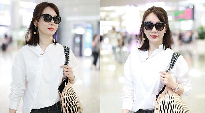 陳數(shù)穿白襯衫知性淺笑甜美迷人 架黑超拎漁網(wǎng)紋展職場女性魅力