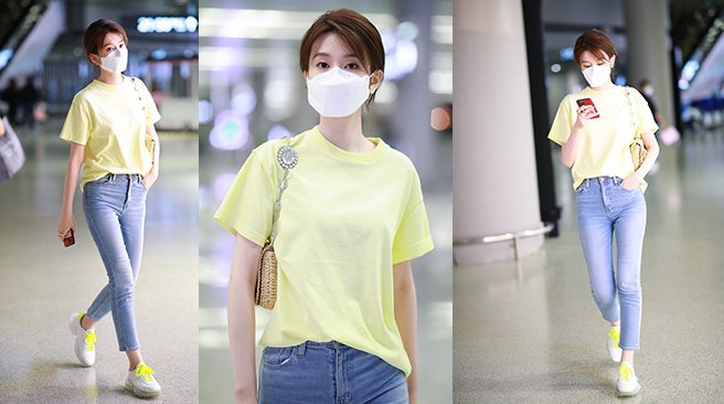 一秒入夏?喬欣私服穿搭堪稱“少女模板“ 黃色短T簡約清新顯元氣活力