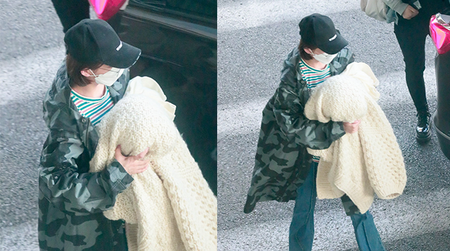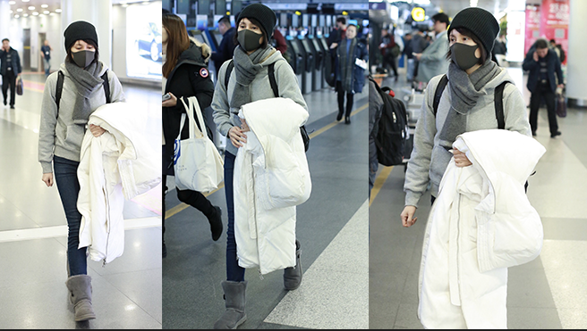 2019年1月5日,北京,袁泉現(xiàn)身機場。
