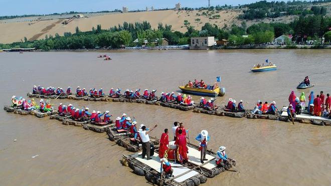 當(dāng)日,“情系母親河——皮筏對歌唱響家鄉(xiāng)情”活動在寧夏中衛(wèi)市沙坡頭景區(qū)舉行。
