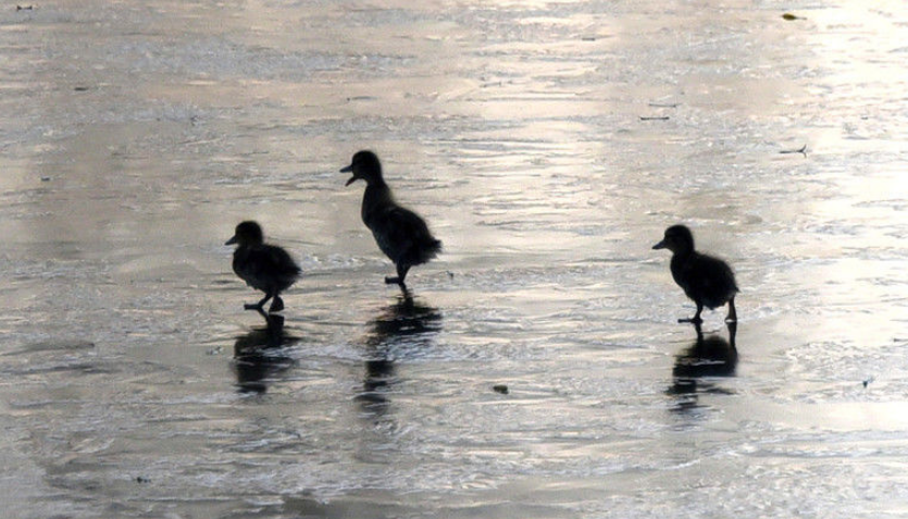 玉淵潭野鴨寶寶“溜冰“戲水萌萌噠