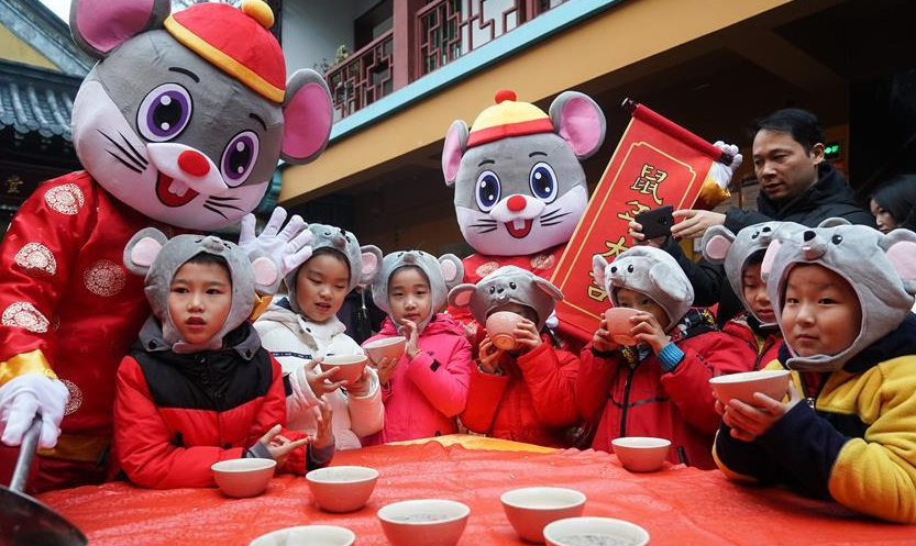 1月2日,小朋友在南京玄奘寺的贈粥送祝福活動現(xiàn)場喝臘八粥。 當(dāng)日是農(nóng)歷臘月初八,中國傳統(tǒng)臘八節(jié)。
