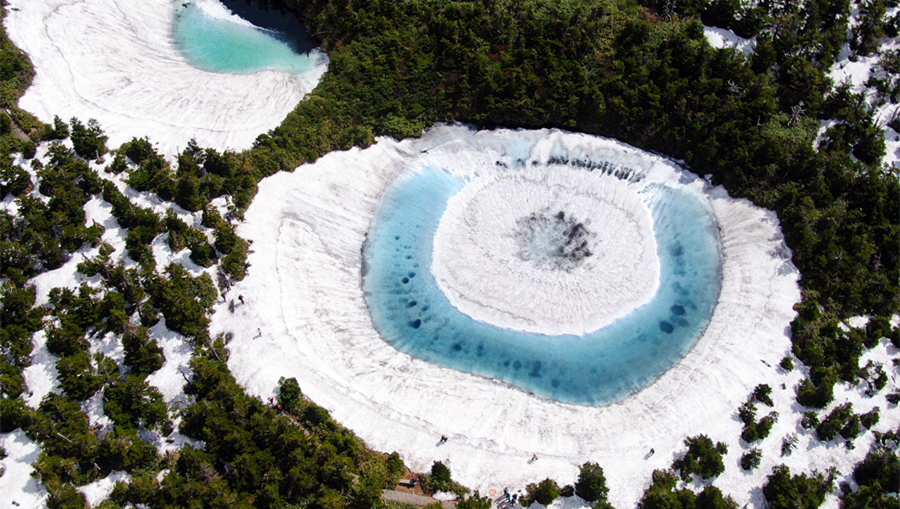近日,長(zhǎng)白山天池冰層逐漸消融,迎來(lái)“開(kāi)冰季”。