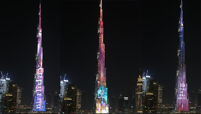 世界第一高樓哈利法塔燈光秀為10周歲“慶生”