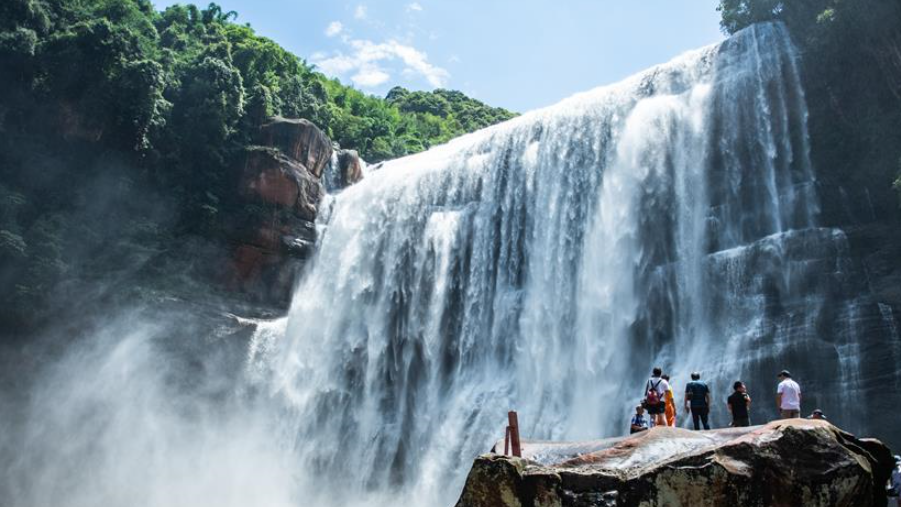 6月15日,游客在赤水大瀑布景區(qū)觀(guān)光游玩。