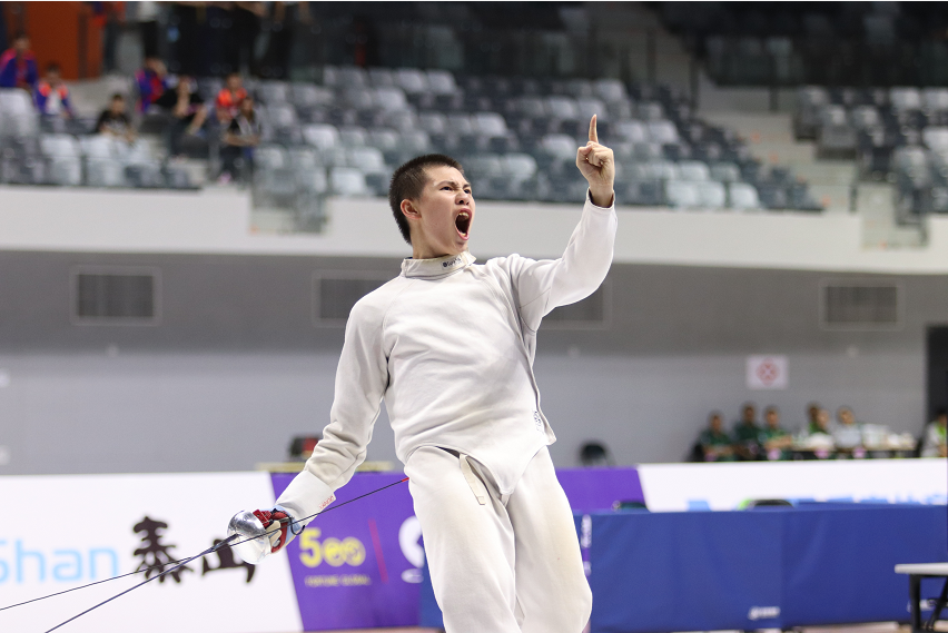 決賽中,東道主選手黎煥廉多次因?yàn)橥炔坎贿m申請(qǐng)暫停,比賽也因?yàn)槠鞑膯?wèn)題一度暫停了將近10分鐘。不過(guò),在深圳擊劍隊(duì)教練王樺陽(yáng)的提示下,周子翔仍然保持著自己的節(jié)奏,在比賽末段連續(xù)得分,收獲一枚來(lái)之不易的金牌。