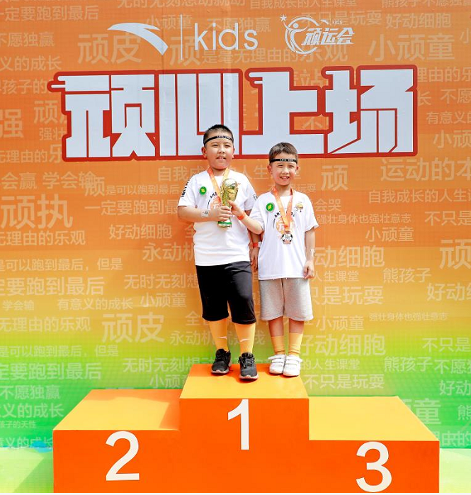 日常中1公里對5、6歲的小朋友來說挺有難度,而“頑運會”的主賽將1公里賽道設計成“頑趣障礙跑”,穿越狹道,挑戰(zhàn)速度;突破浮橋、躲避旋轉(zhuǎn)風車挑戰(zhàn)平衡感;終點臨門一腳,爆發(fā)力十足……這些有趣的環(huán)節(jié)讓孩子們即便跑累了也舍不得放棄,以頑皮又頑強的狀態(tài)勇闖關(guān)卡。