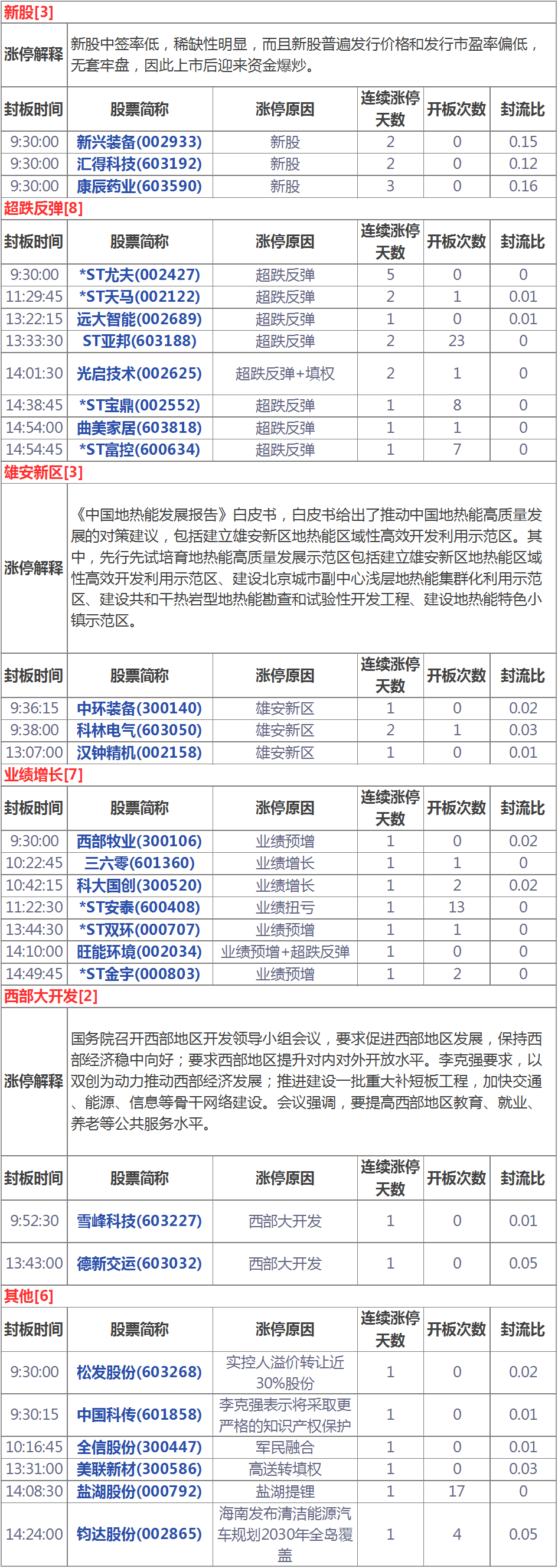 今天漲停家數(shù)較上一交易日有所減少,兩市29家漲停;跌停8家。成交量方面,滬市成交1012億元,深市成交1451億元,兩市總成交額約為2463億元,較上一交易日縮量451億元。盤面上,知識產(chǎn)權(quán)保護、養(yǎng)殖業(yè)、網(wǎng)絡安全等板塊漲幅居前;鈦白粉、高送轉(zhuǎn)、稀土永磁等板塊跌幅居前。