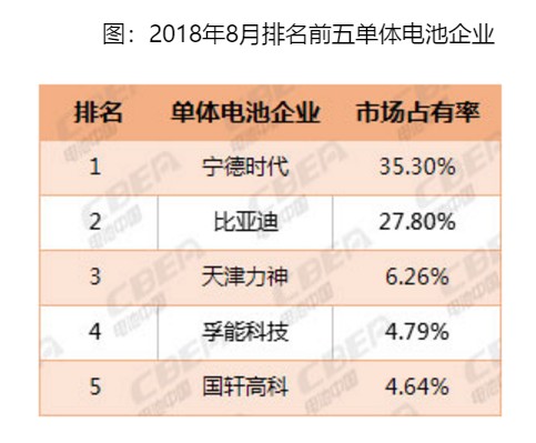 從電池企業(yè)來看,同上月相比,排名前三的企業(yè)沒有變化,行業(yè)龍頭地位企穩(wěn)。寧德時代以1.47Gwh的動力電池裝機(jī)量位列第一,占8月總裝機(jī)量的35.3%。比亞迪緊隨其后,動力電池裝機(jī)量為1.16Gwh,占比27.8%。而排名第三的天津力神為0.26Gwh,占比6.26%。(林淼)