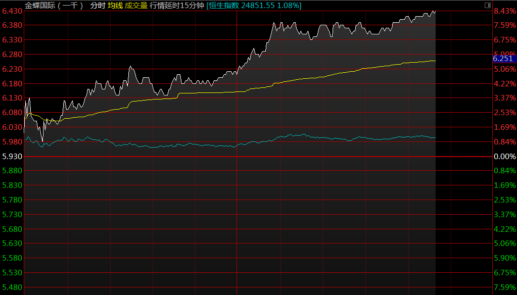 智通財經(jīng)APP獲悉,花旗首予金蝶國際(00268)“買入”評級,目標價看高至10.1港元,午后漲幅擴大,截至13時49分,漲7.25%,報價6.36港元,成交額2.18億。
