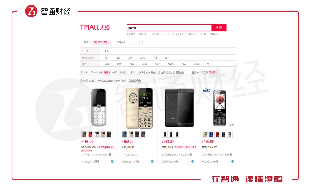 當(dāng)然,也有部分手機(jī)品牌存活下來的,比如1992年成立的波導(dǎo)手機(jī),以及2002年成立的天語(yǔ)手機(jī),其中波導(dǎo)手機(jī)在2004-2005創(chuàng)造輝煌,當(dāng)時(shí)年銷售突破1000萬臺(tái),但2006年后市場(chǎng)份額急速下降,目前雖有機(jī)型在賣,但少人問津。在天貓上,波導(dǎo)手機(jī)最大的月成交筆數(shù)為1.3萬筆,天語(yǔ)手機(jī)為4萬筆。