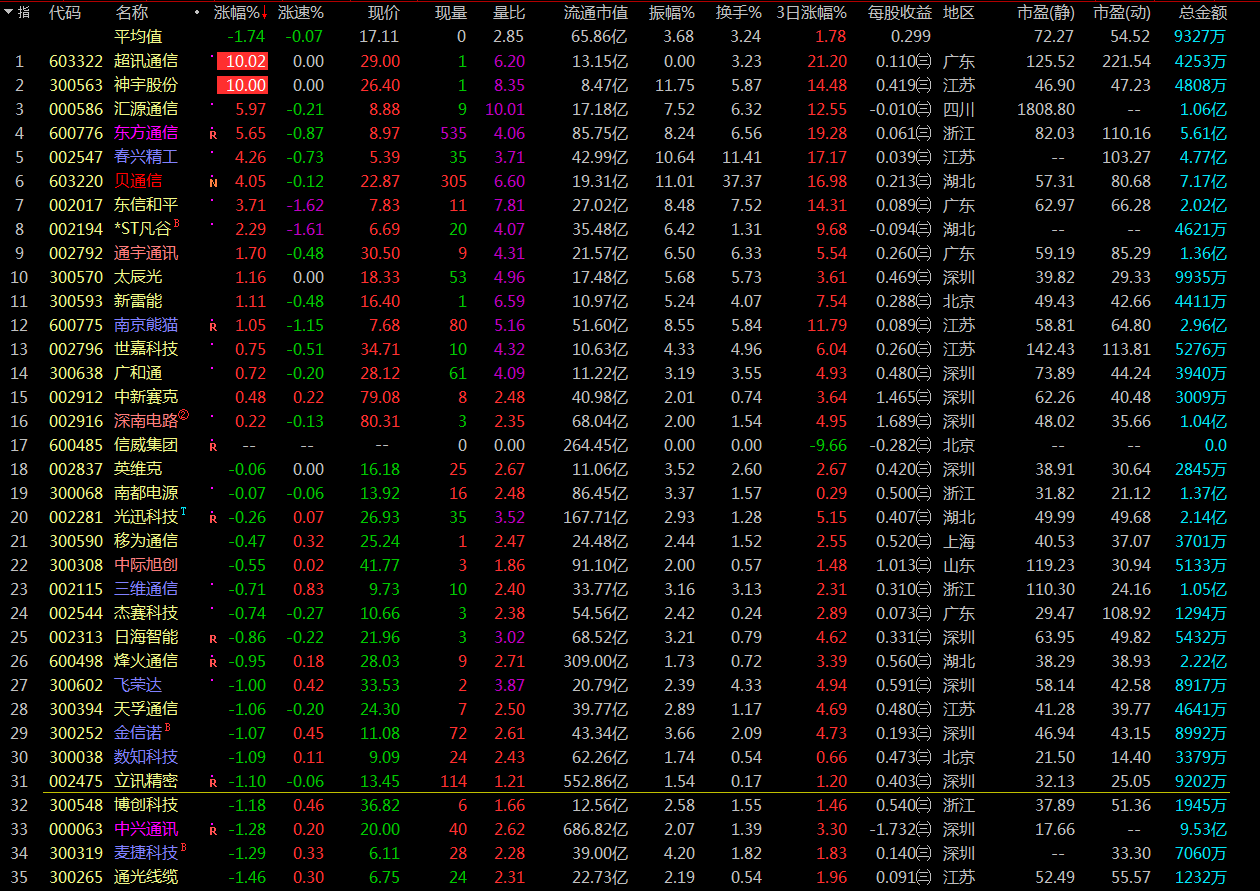 超乎尋常的頑強(qiáng),早盤(pán)競(jìng)價(jià)除東方通信(600776)與超訊通信(603322),板塊近乎全軍盡歿,但開(kāi)盤(pán)后泰永長(zhǎng)征(002927)、東方通信(600776)快速上拉,超訊通信(603322)封死一字板,給了市場(chǎng)短線資金信心,抄底盤(pán)開(kāi)始進(jìn)場(chǎng),板塊開(kāi)始迅速上攻。從今天早盤(pán)的表現(xiàn)看,5G板塊資金介入程度頗深,后續(xù)應(yīng)重點(diǎn)關(guān)注。