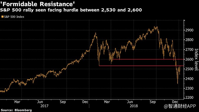 下圖顯示了標(biāo)準(zhǔn)普爾500指數(shù)(S&P500)10-11月10%的跌幅,但跌幅并未持續(xù)?,F(xiàn)在,過去的支撐位已經(jīng)變成了指數(shù)的頂部。