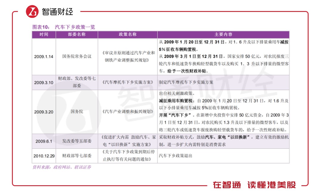 實際上,在2019年1月28日政府部門就印發(fā)了《進一步優(yōu)化供給推動消費平穩(wěn)增長促進形成強大國內(nèi)市場的實施方案(2019年)》,多舉措促進汽車消費,比如促進農(nóng)村汽車更新?lián)Q代,購買3.5噸及以下貨車或者1.6升及以下排量乘用車,給予適當(dāng)補貼,帶動農(nóng)村汽車消費等。