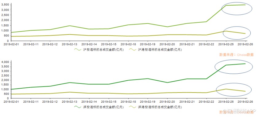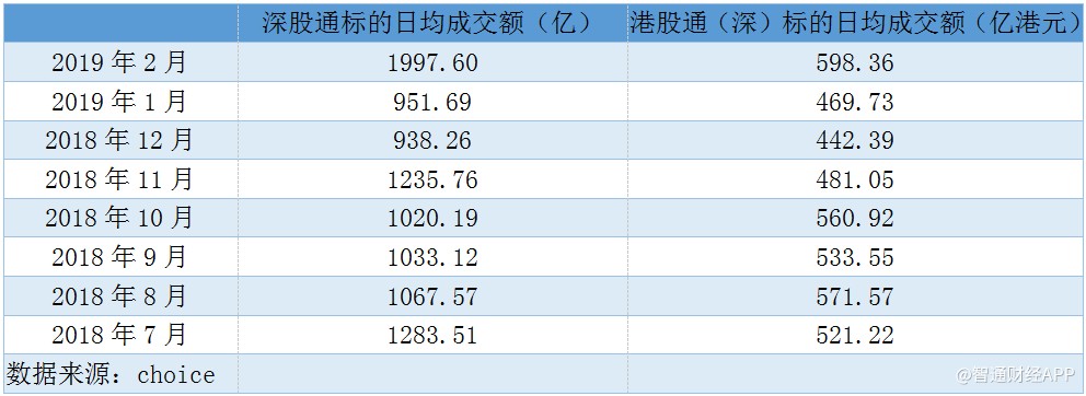 伴隨著股市上漲的,是兩地資本互通的熱度。據(jù)智通財經(jīng)APP統(tǒng)計,北上資金方面,2019年2月,滬(深)股通標的日均成交額分別為1663.55億、1997.6億;南下資金方面,滬(深)港股通日均成交額分別為556.31億、598.36億,均相較于其他月份顯著放大。