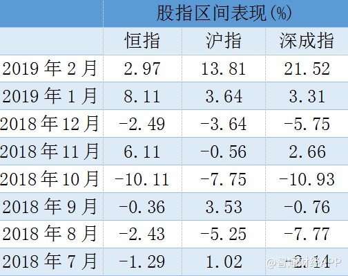 截至發(fā)稿,恒指2月累計上漲2.97%,同期滬指、深成指分別上漲13.81%與21.52%。下圖統(tǒng)計了去年6月至今年2月的主要股指區(qū)間表現(xiàn),可以看到,今年開年以來,兩地市場的表現(xiàn)幾乎可以用“靚眼”來形容。