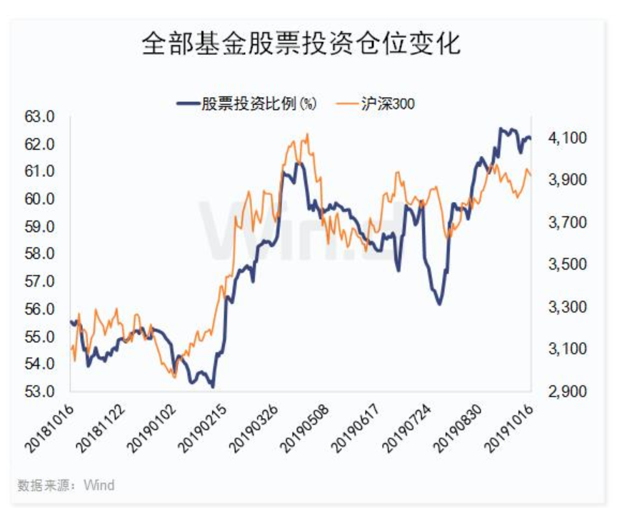 Wind數(shù)據(jù)顯示,截止10月16日,在全部3307只持有股票的基金中,股票投資比例為62.21%,下半年來累計(jì)增倉(cāng)3.59個(gè)百分點(diǎn)。