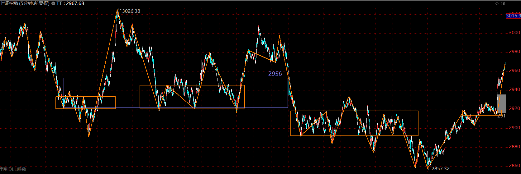 上周市場(chǎng)用前四天的時(shí)間,完成了這一輪五分鐘上漲趨勢(shì)的第一個(gè)中樞構(gòu)建,是一個(gè)奔走型的中樞,隨后在周五開(kāi)始了主升階段。值得欣喜的是,市場(chǎng)終于在2956這個(gè)大關(guān)口放量了,并且一舉突破,預(yù)計(jì)在2956到3000點(diǎn)這40點(diǎn)的空間內(nèi),市場(chǎng)將會(huì)完成五分鐘上漲第二個(gè)中樞的構(gòu)建,并且橫盤(pán)將其擴(kuò)展為30分鐘級(jí)別,時(shí)間周期大約是極點(diǎn)出現(xiàn)后的10到15個(gè)交易日。這將是投資者積極調(diào)倉(cāng)換股,耐心布局年報(bào)行情的最佳時(shí)期。