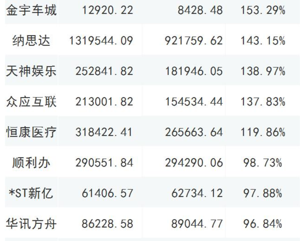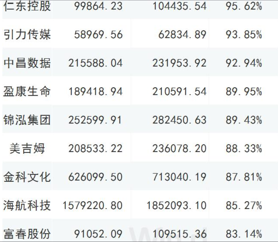 截至2019年三季報(bào)商譽(yù)占凈資產(chǎn)比重大于70%的公司,共有46家;12家的比值超過(guò)了百分百,以下列舉部分超過(guò)80%的公司;謹(jǐn)慎年終商譽(yù)減值風(fēng)險(xiǎn)爆發(fā);