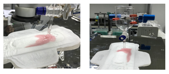 1.35款衛(wèi)生巾滲入量遠大于標準要求,其中33款樣品能在測試中將5ml模擬血液完全吸收。