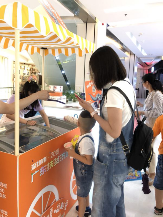6月23日,“甜蜜初夏 慈善一直在”深圳10大地標(biāo)冰激凌義賣活動在在福田星河COCO Park啟動?,F(xiàn)場,很多逛商場的市民掃碼購買冰淇淋,為扶貧濟(jì)困活動捐款。特別讓志愿者感觸的是,不少家長帶著小朋友路過,看到是給貧困人們貢獻(xiàn)愛心,紛紛參與進(jìn)來要買冰激凌。