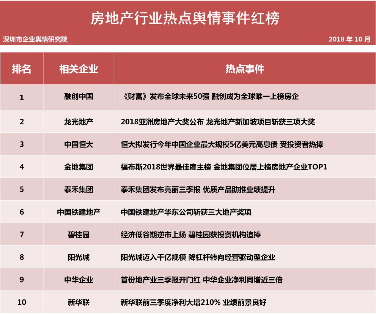 深圳新聞網(wǎng)訊 (記者田志強(qiáng) 通訊員陳文光)近日深圳企業(yè)輿情研究院發(fā)布第九批企業(yè)輿情榜單。本次榜單重點(diǎn)聚焦房地產(chǎn)及醫(yī)藥保健兩個(gè)行業(yè)。房地產(chǎn)行業(yè)企業(yè)輿情榜單由房地產(chǎn)行業(yè)熱點(diǎn)輿情事件排行榜(紅、黑榜)及房地產(chǎn)企業(yè)公眾形象排行榜組成。