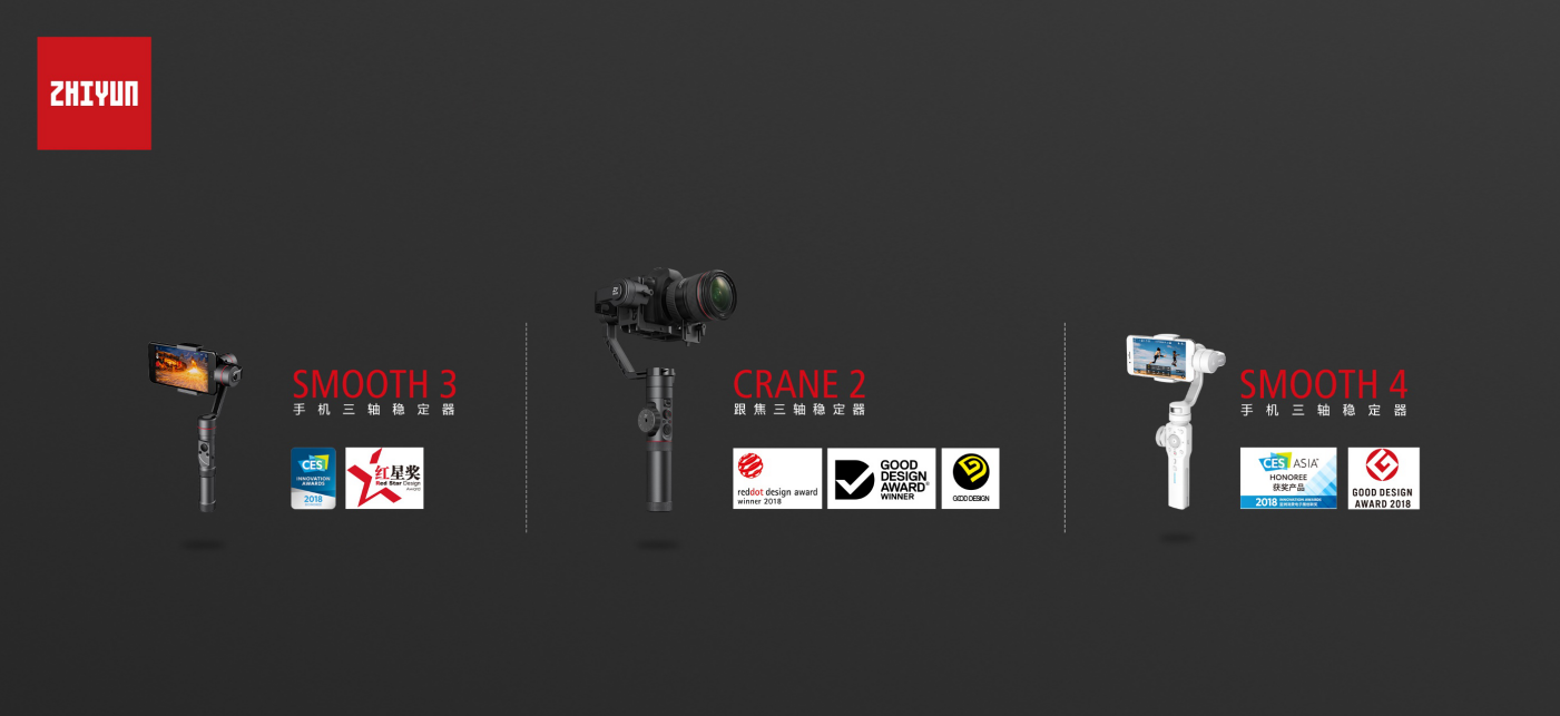 據悉,智云產品已屢獲國際設計大獎:SMOOTH3獲得紅星獎、2018CES創(chuàng)新大獎;云鶴2獲得紅點獎、GOOD DESIGN韓國、GOOD DESIGN澳大利亞獎;SMOOTH4獲得 CES亞洲創(chuàng)新大獎。產品多次在熱門綜藝、新聞報道中應用,深受用戶喜愛和各權威媒體肯定。