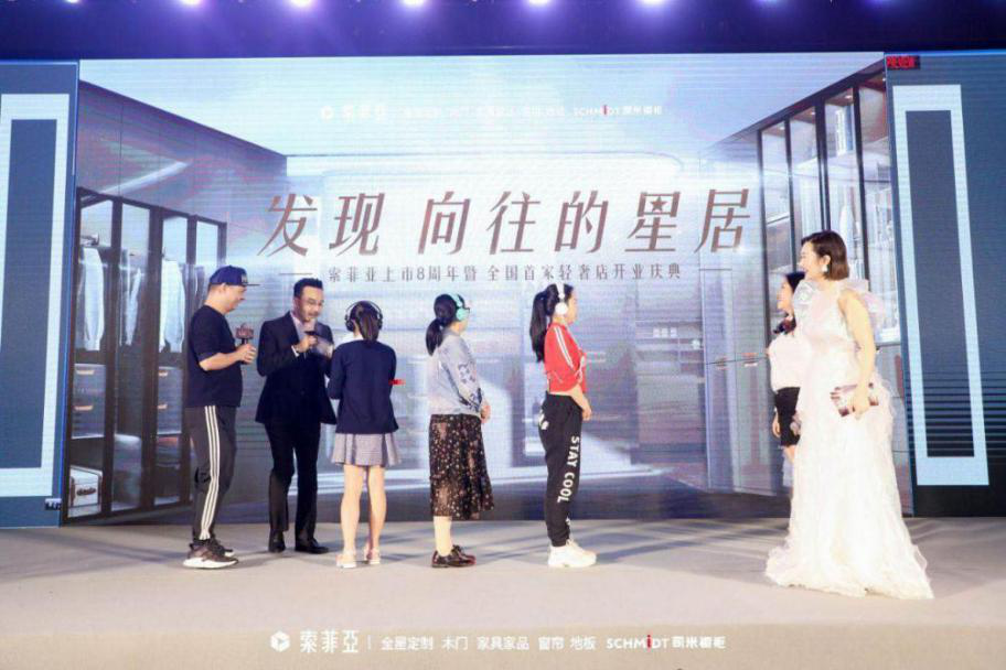 汪涵與索菲亞公司領(lǐng)導(dǎo)同臺(tái)慶祝索菲亞上市8周年及全國(guó)首家輕奢店開(kāi)業(yè)儀式,將現(xiàn)場(chǎng)氣氛再次推向高潮。