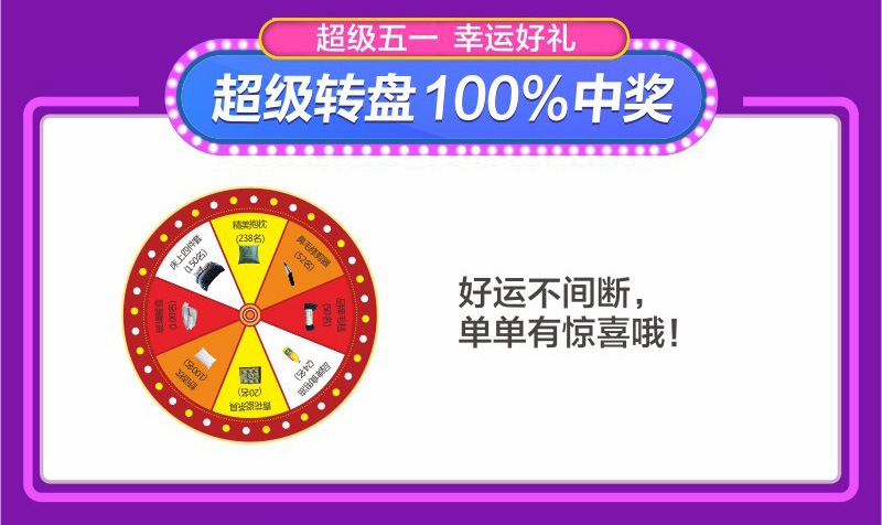 2、超級(jí)大轉(zhuǎn)盤(pán),100%中獎(jiǎng):活動(dòng)期間,顧客憑活動(dòng)期間的訂單(單筆實(shí)付3000以上)即可參與超級(jí)大轉(zhuǎn)盤(pán)活動(dòng),送完即止!