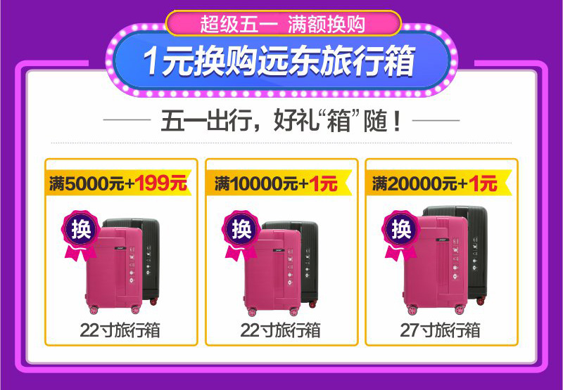 5、1元換購(gòu)FAREAST旅行箱:活動(dòng)期間,顧客凡在店內(nèi)下定實(shí)付(多個(gè)訂單可累積)滿5000元可加199元換購(gòu)22寸 FAREAST旅行箱;滿10000元可加一元換購(gòu)22寸 FAREAST旅行箱,滿20000元加一元換購(gòu)27寸FAREAST旅行箱,送完即止。