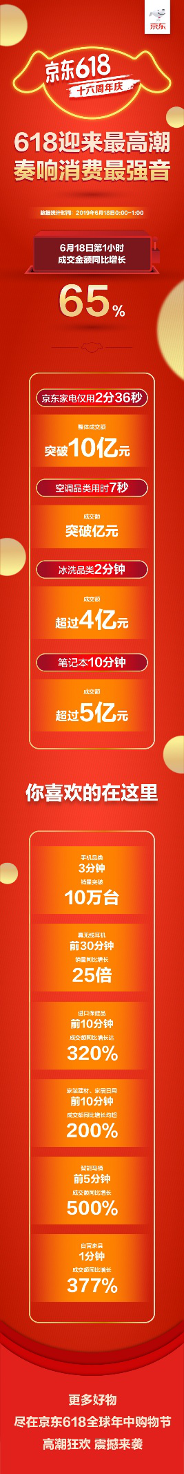 京東數(shù)科旗下京東金融在18日開場(chǎng)24秒的京東白條交易額即破億,京東支付峰值達(dá)去年同期的3.25倍。
