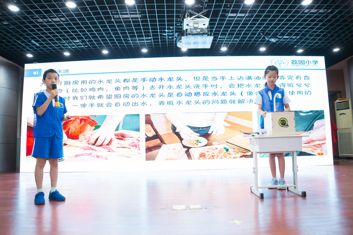 路演階段更是精彩紛呈,如:荔園小學(xué)通新嶺校區(qū)的“廚用智能感應(yīng)水龍頭”、明德實(shí)驗(yàn)學(xué)校碧海校區(qū)的“天臺智能晾曬房”、上步小學(xué)的“智能鼠標(biāo)”、華富小學(xué)的“室內(nèi)照明監(jiān)測盒”等眾多創(chuàng)意新奇的作品。