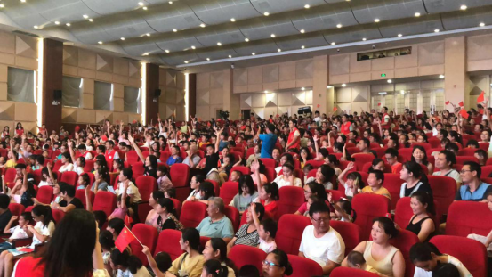 接下來(lái),為進(jìn)一步增強(qiáng)青少年兒童的愛(ài)國(guó)意識(shí),主辦方將戲劇教育與愛(ài)國(guó)教育有機(jī)融合,于文明知識(shí)問(wèn)答后,邀請(qǐng)近千名觀眾一起舞動(dòng)小紅旗,齊聲唱響《我和我的祖國(guó)》,點(diǎn)燃了在場(chǎng)每一位觀眾的愛(ài)國(guó)熱情,觀眾們跟隨著旋律,共同歌唱祖國(guó),深情祝福祖國(guó)明天更加輝煌。