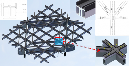 由于每一個(gè)小“盒子”的顏色都是獨(dú)一無二的,需要在生產(chǎn)階段為每一塊零件編號(hào),并在安裝時(shí)按編號(hào)一塊一塊進(jìn)行組合。更讓項(xiàng)目部犯難的是,在根據(jù)原有方案進(jìn)行樣板安裝時(shí),“盒子”全部下垂,原因是菱形盒子突出內(nèi)層幕墻1米,難以固定支撐。后經(jīng)反復(fù)研究試驗(yàn),決定在裝盒子前,在墻上做一個(gè)外觀似蜘蛛網(wǎng)的控制體系,為每個(gè)菱形盒子準(zhǔn)確定位,將安裝精度控制在毫米級(jí)。
