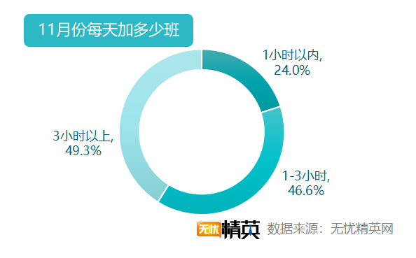因?yàn)殡p11而加班的職場(chǎng)精英中,有49.3%的人,11月上旬平均每天需要加班3小時(shí)以上,別人忙著購物,而他們忙著加班;46.6%的人,加班時(shí)間1-3小時(shí);24%的人,每天加班時(shí)間在1小時(shí)以內(nèi)。雙11的前兩天往往是最緊張的,今年恰好是周末,加班也由晚上加班,變成了全天加班,從業(yè)者更是辛苦一些。