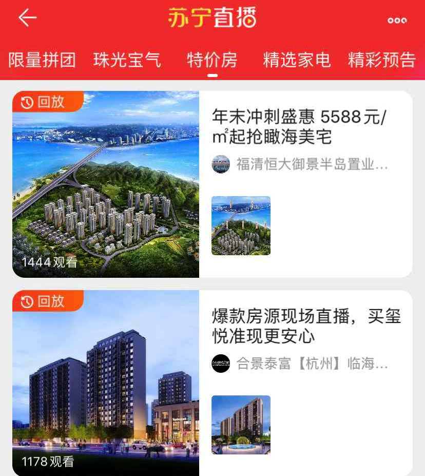 為了讓購房者更快速、更直觀、更真實的查看在售樓盤信息,雙十二特價房上線之后,蘇寧直播舉行了上百場看房直播,讓眾多的購房者眼見為實,通過直播鏡頭,了解意向房源的真實情況。