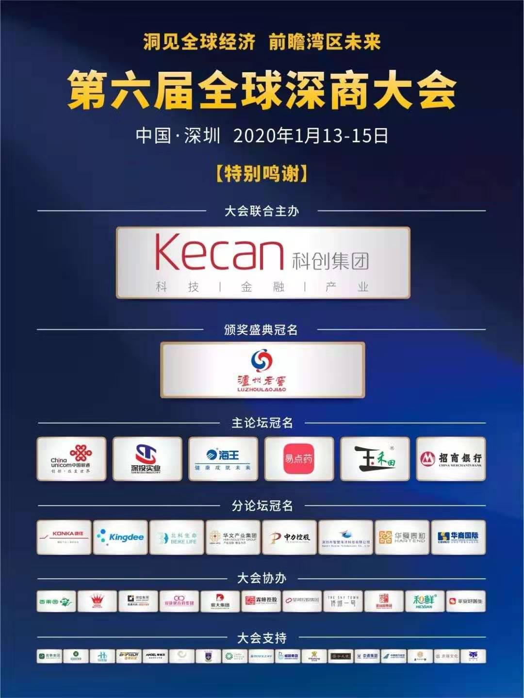 深圳新聞網(wǎng)2020年1月14日訊 1月13日晚,由深圳市商務(wù)局指導(dǎo),深圳市深商總會、深圳市商業(yè)聯(lián)合會主辦,順德區(qū)人民政府聯(lián)合主辦,瀘州老窖股份有限公司冠名的第六屆全球深商大會頒獎盛典以及深投實業(yè)集團(深圳)有限公司冠名的“洞見全球經(jīng)濟,前瞻灣區(qū)未來”論壇在保利劇院開幕。