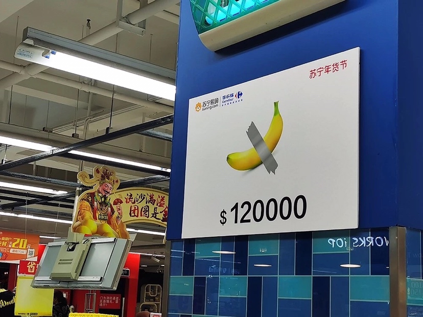 售價(jià)12萬(wàn)美元的香蕉你見(jiàn)過(guò)嗎?反正 小編 今天在家樂(lè)福 華南區(qū)門(mén)店 見(jiàn)到了!這可是從美國(guó)巴塞爾藝術(shù)展 引進(jìn)的行為藝術(shù)。 獲此靈感,蘇寧版“天價(jià)年貨” 應(yīng)運(yùn)而生!