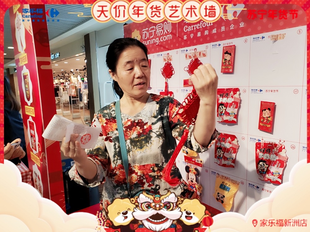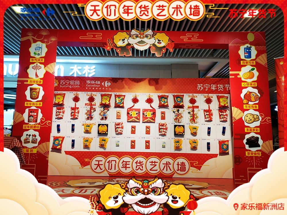 天價(jià)年貨藝術(shù)墻,藝術(shù)年貨送不停 ! 1月17日 至 1月 19 日 , 家樂(lè)福華南區(qū)廣州員村店、珠海吉大店、福州寶龍店 、廈門(mén)中華城店及 深圳新洲店 (活動(dòng)時(shí)間為1.16-1.18) 活動(dòng)繼續(xù) 。 禮品數(shù)量有限,每天送完即止 !蘇寧家樂(lè)福 實(shí)力助你過(guò)年味滿滿的春節(jié) ,邀請(qǐng)您 來(lái)把年貨驚喜領(lǐng)回家 !