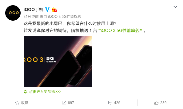 不僅如此,iQOO官博還在近期發(fā)布了一條“ UFS3.1用起來真快,二月見哦!”的微博,進(jìn)一步肯定了iQOO3的即將到來,并將搭載UFS3.1頂級閃存芯片的事實(shí)。這是繼iQOO Neo855版采用UFS3.0閃存領(lǐng)先業(yè)界后的再次升級,進(jìn)一步提升和鞏固了iQOO3的5G性能旗艦定位。