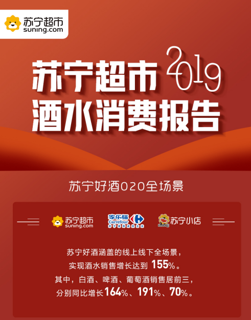 深圳新聞網(wǎng)2020年3月20日訊 昨日,蘇寧超市發(fā)布2019年度酒水消費(fèi)報(bào)告。數(shù)據(jù)顯示,2019年,蘇寧好酒全渠道銷售同比增長155%。其中,白酒、啤酒、葡萄酒銷售分別同比增長164%、191%、70%??v觀整年,家樂福、飛天茅臺(tái)酒、全場景等成2019年蘇寧酒水關(guān)鍵詞,這也進(jìn)一步凸顯了蘇寧超市酒水生態(tài)圈建設(shè)的卓越成效。