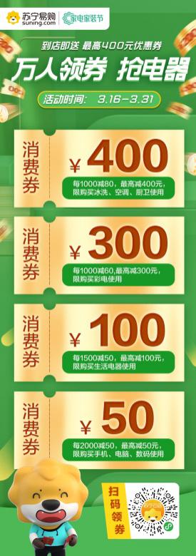 深圳蘇寧針對(duì)整個(gè)粵東區(qū)域投放近20萬張消費(fèi)券,該券根據(jù)可用產(chǎn)品類型分為400元、300元、100元、50元四種不同面值。消費(fèi)券以電子券為形式發(fā)放,消費(fèi)者可通過深圳蘇寧微信公眾號(hào)、深圳蘇寧官方微博、蘇寧云店小程序和蘇寧易購門店進(jìn)行領(lǐng)取,領(lǐng)取成功后,消費(fèi)券將自動(dòng)存儲(chǔ)在消費(fèi)者的蘇寧會(huì)員賬戶中,使用時(shí)系統(tǒng)會(huì)根據(jù)購買的商品類別進(jìn)行自動(dòng)適配和抵扣結(jié)算。