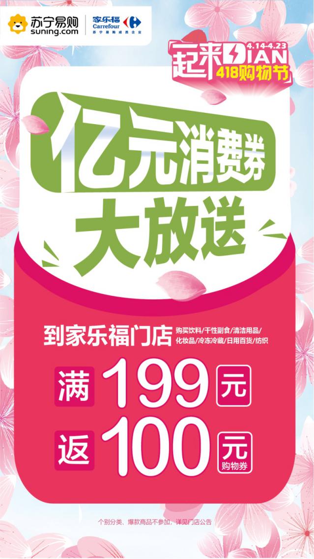 4月9日,家樂福宣布面向全國消費者發(fā)放總額過億的家樂福消費券,旨在提振市民消費信心,促進(jìn)消費回暖?!?18一起來Dian”購物節(jié)期間,凡在家樂福全國209家線下門店購物滿199元,即可獲贈總值100元的消費券(5張20元消費券),覆蓋眾多暢銷品類以及剛需民生商品(消費券可在指定期間使用)。