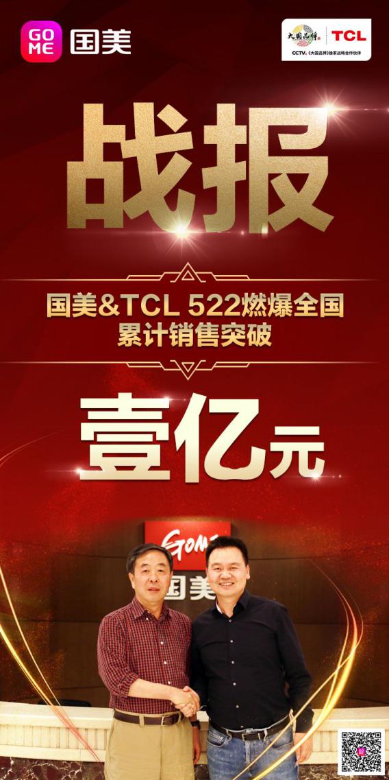 見(jiàn)圳客戶(hù)端·深圳新聞網(wǎng)2020年5月28日訊 5月24日,國(guó)美&TCL燃爆5.22活動(dòng)完美收官,活動(dòng)期內(nèi) TCL電視單品牌實(shí)現(xiàn)銷(xiāo)售突破1億元。5月, TCL品牌在國(guó)美銷(xiāo)售額實(shí)現(xiàn)142%同比增長(zhǎng),創(chuàng)造了其國(guó)美渠道月度同期銷(xiāo)售紀(jì)錄。