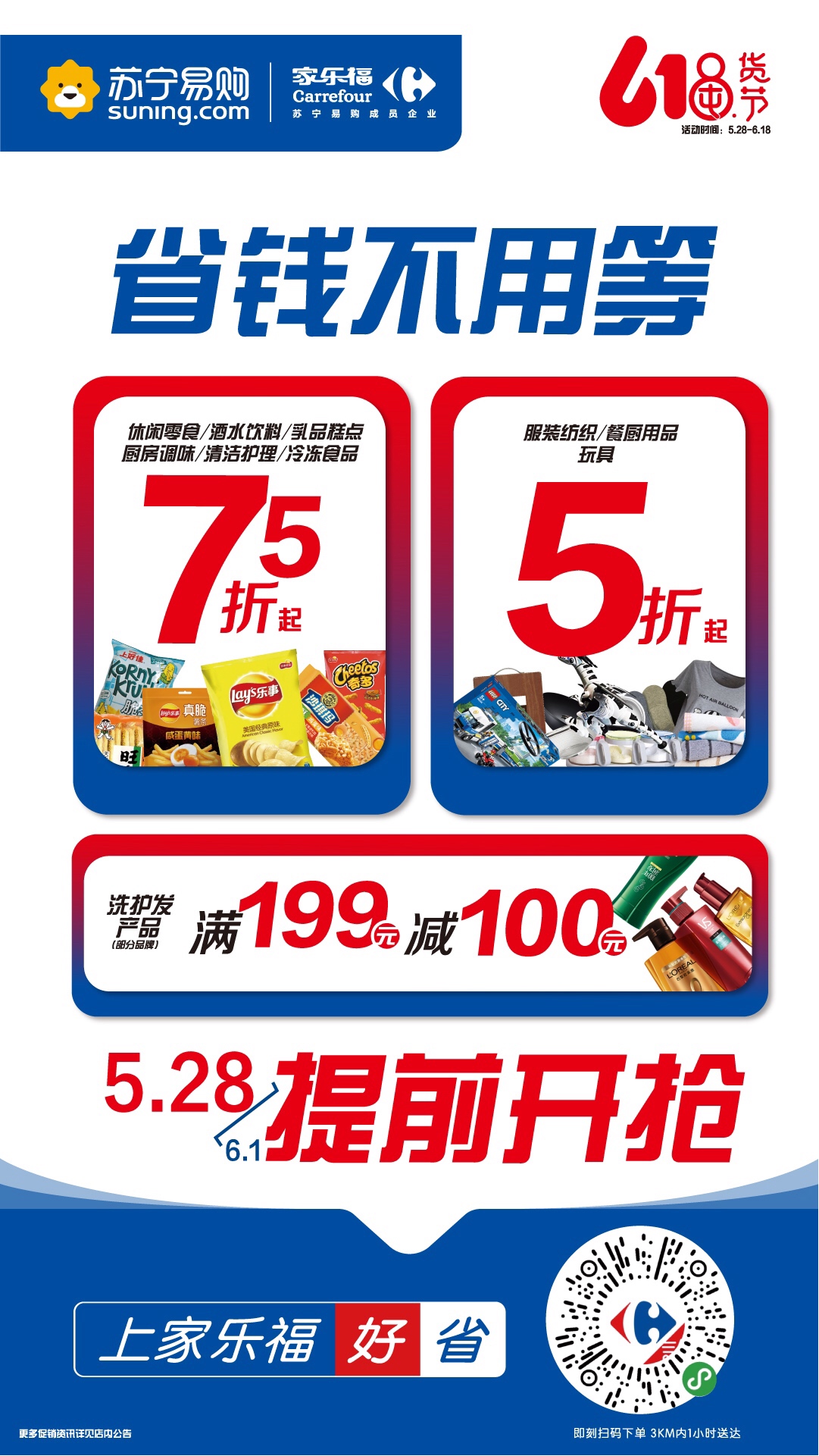 作為蘇寧陣營中的排頭兵、蘇寧大快消產(chǎn)業(yè)的核心部分,家樂福率先出戰(zhàn)。為了給消費(fèi)者提供充足時(shí)間選擇心儀的商品,家樂福618囤貨節(jié)即將拉開帷幕,讓消費(fèi)者盡享“618省錢不用等”的升級(jí)購物體驗(yàn)。