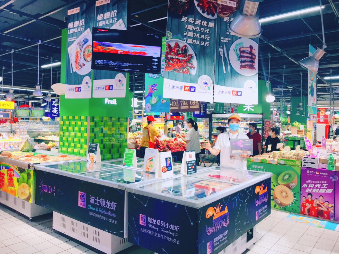 (圖片為家樂福門店直播帶貨現(xiàn)場)