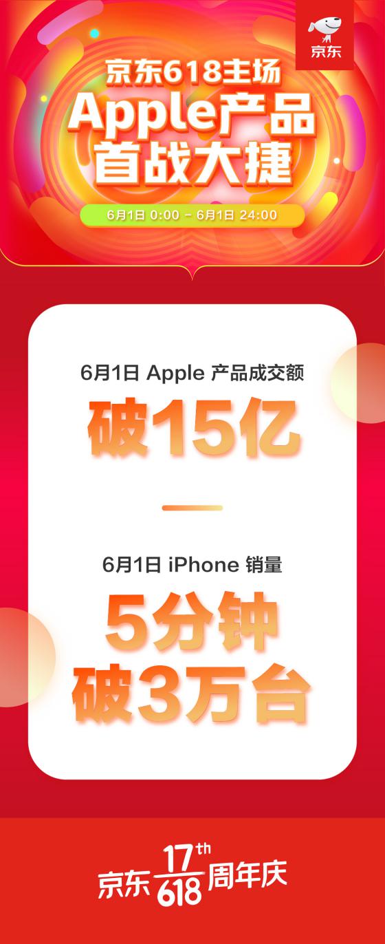見圳客戶端·深圳新聞網(wǎng)2020年6月3日訊 京東618開啟首日,Apple品牌接連創(chuàng)下銷售記錄:僅5秒銷售額就突破1億;5分鐘后,iPhone銷量突破3萬臺(tái);全天成交金額達(dá)到15億。